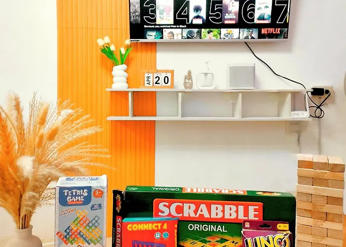 このアパートには設備の整った設備の整った台所もあります。 宿泊施設から約500メートルほどのH. Lopez/Rodriguezバス停からバスに乗って、マニラ市の他の地域を探索することもできます。